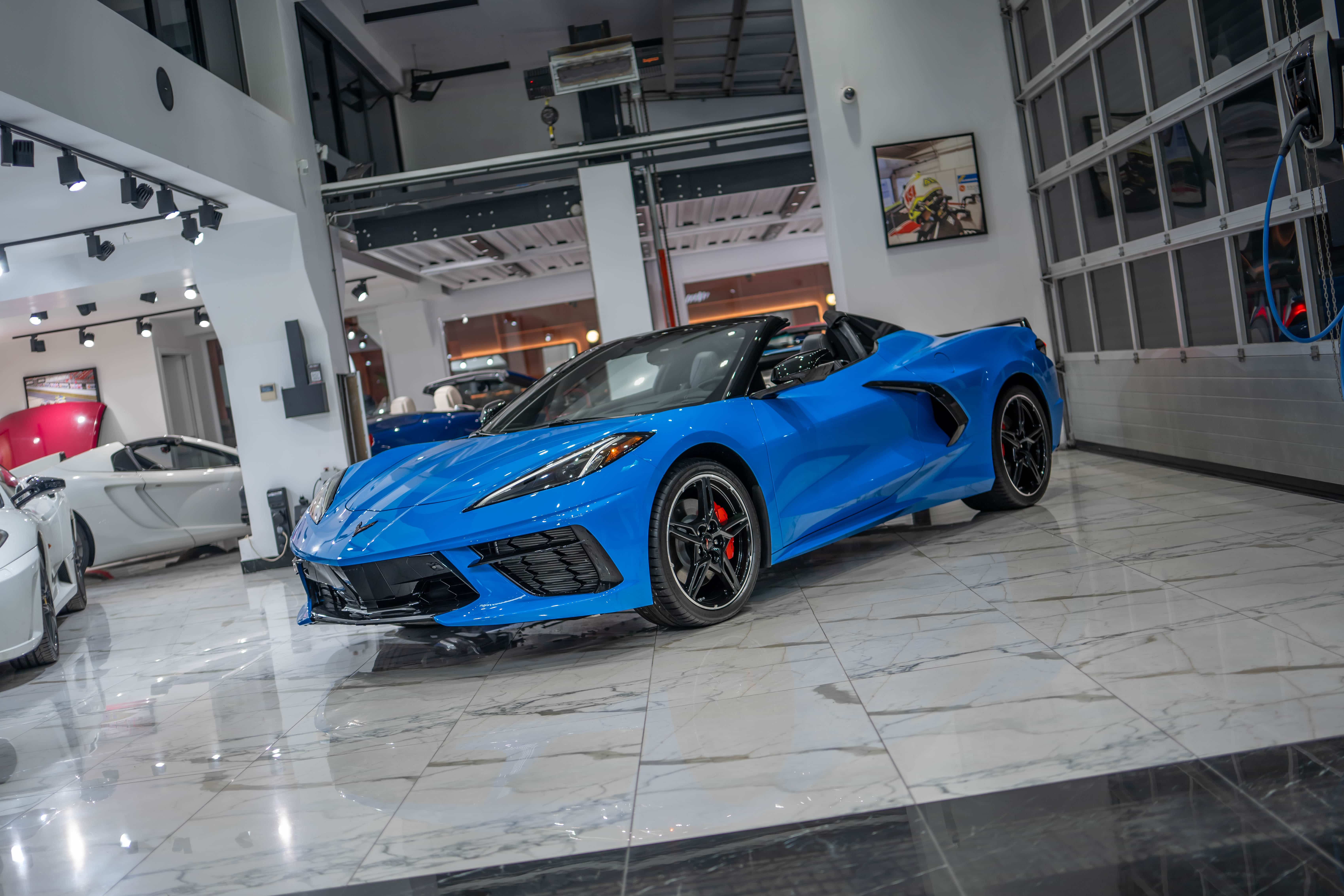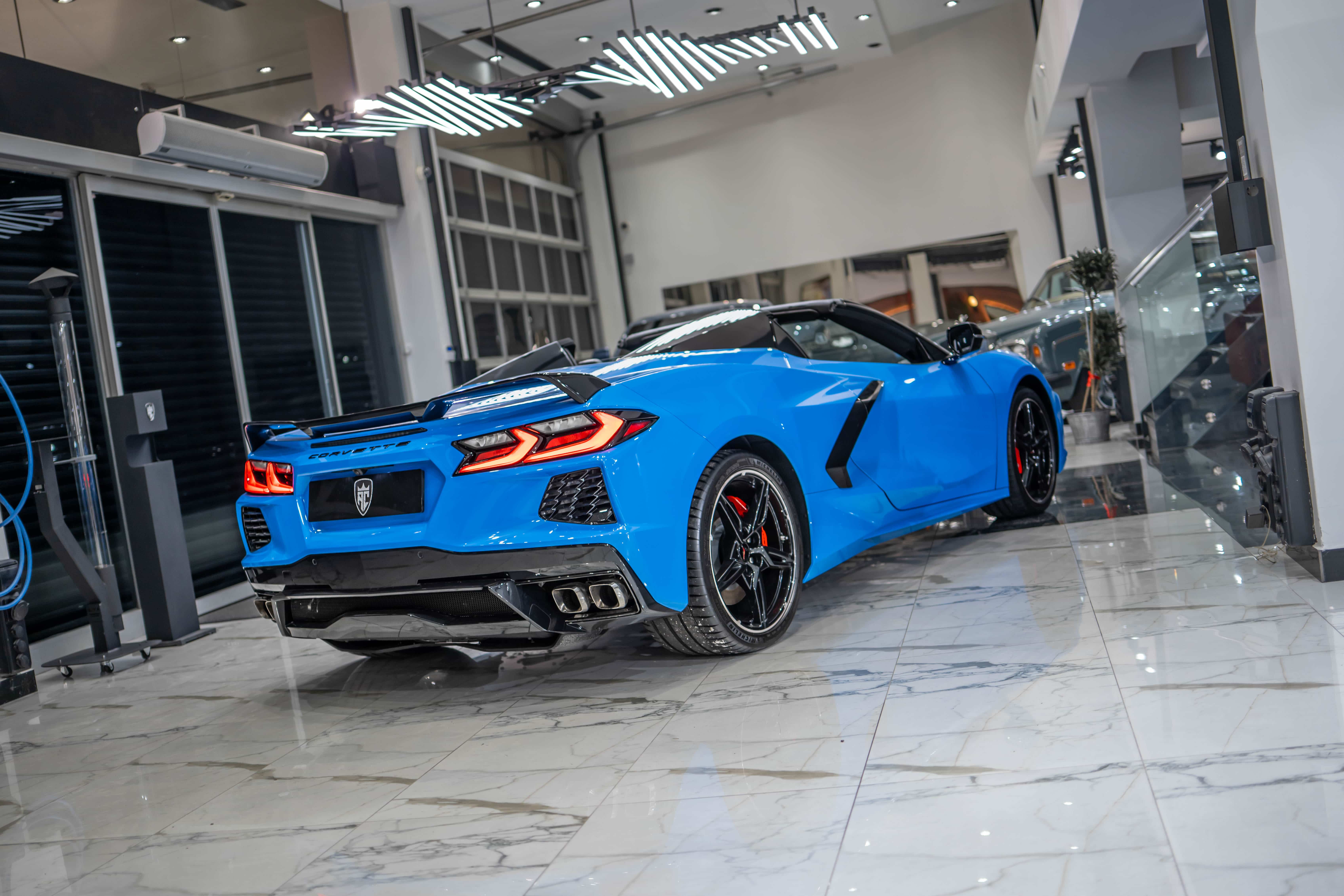 The Corvette C8 6.2 Convertible is a luxury sports car equipped with Chevrolet's powerful V8 engine. It emphasizes performance with an eight-speed dual-clutch automatic transmission and a acceleration time (0-100 km/h in approximately 3 seconds). It also stands out with its retractable roof and modern technology features.Details